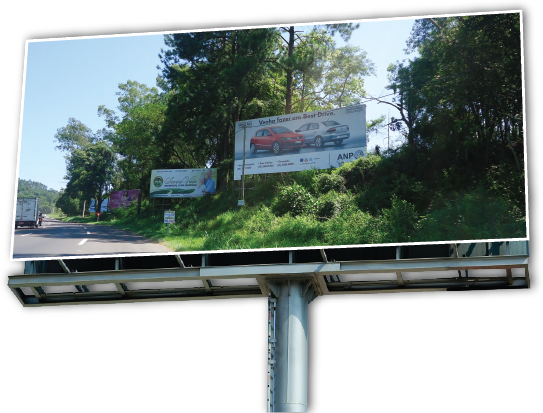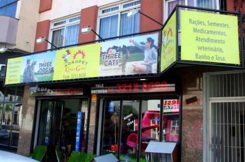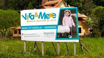 Outdoors, nosso carro chefe, vem acompanhado por toldos, fachadas, cartões de visitas, folders e banners.